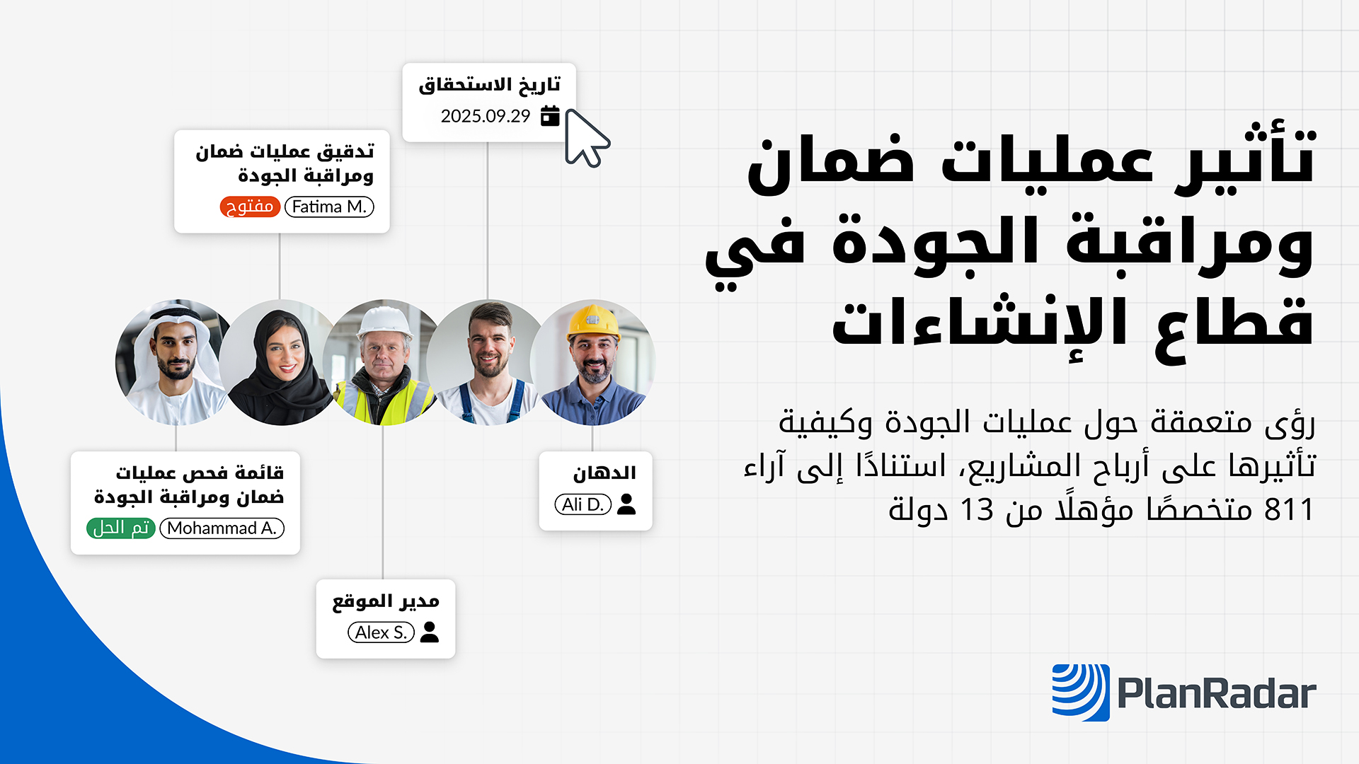وتُظهر نتائج تقرير PlanRadar لتأثير عمليات ضمان ومراقبة الجودة في البناء أن 67٪ من الشركات ما زالت تستخدم النماذج الورقية أو البرامج العامة مثل Excel، مما يؤدي إلى ضعف الاتساق وصعوبة تتبع الأداء في مواقع المشاريع.