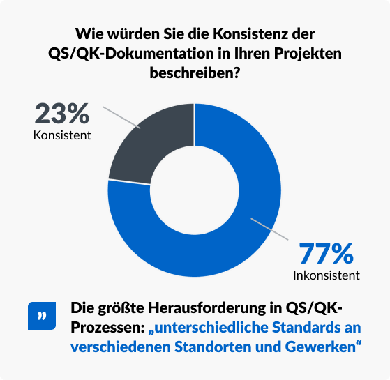 Neue Untersuchungen zeigen, dass uneinheitliche QS/QK-Standards die Margen schmälern, Nacharbeiten erforderlich machen und zu Streitigkeiten bei Projekten führen. Insgesamt nahmen 811 qualifizierte Fachleute aus 13 Ländern teil, die direkt QS/QK durchführen oder beaufsichtigen. Sie zeigten auf, wie fragmentierte Prozesse die Transparenz verringern und Kosten in den Hintergrund drängen – was zu Nacharbeiten, zu Bauzeitenplan-Verzögerungen, Streitigkeiten und Gewährleistungsrisiken führt.